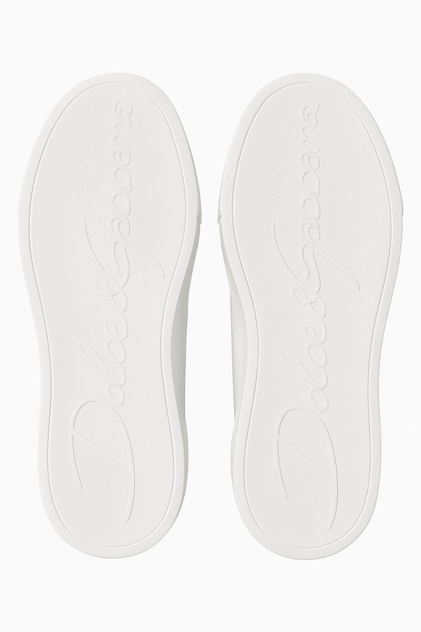 Model: Dolce & Gabbana Low-Top Sneaker – White with Black Heel Tab & Gold Accents 2018